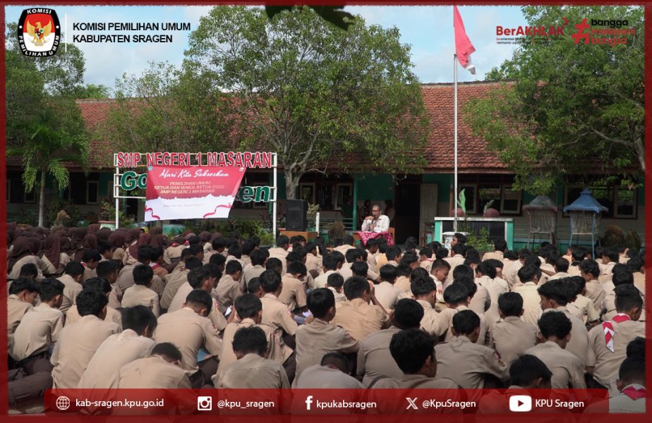 Sragen, kab-sragen.kpu.go.id - Komisi Pemilihan Umum Kabupaten Sragen kembali turun ke lapangan untuk mengenalkan dunia kepemiluan kepada generasi muda. Kali ini, KPU Sragen hadir sebagai pemateri dalam rangkaian Pemilihan Ketua dan Wakil Ketua OSIS SMP Negeri 1 Masaran, Jumat (12/12/2025). Di lapangan sekolah yang menjadi pusat kegiatan, ratusan siswa tampak antusias menyimak setiap penjelasan yang disampaikan. Sosialisasi ini dirangkai bersamaan dengan agenda penyampaian visi–misi serta debat para calon pengurus OSIS. Para kandidat sebelumnya telah melalui proses layaknya pemilu sungguhan: mulai dari pendaftaran, kampanye, hingga persiapan menuju hari pemungutan suara dan penghitungan yang dijadwalkan berlangsung keesokan harinya. Dalam sesi materi, siswa diperkenalkan pada dasar-dasar kepemiluan—siapa saja yang disebut peserta, siapa pemilih, dan bagaimana peran penyelenggara. Dua Anggota KPU Sragen, Irwan Sehabudin dan Mukhsin, hadir langsung bersama dua staf sekretariat, Agung Sapto Adi dan Faisal Muafa, untuk memberikan penjelasan sekaligus menjawab pertanyaan para siswa. Kegiatan ini bukan sekadar sosialisasi, tetapi juga upaya menanamkan pemahaman bahwa pemilihan Ketua OSIS adalah miniatur demokrasi yang harus dijalankan dengan benar. Pihak sekolah menyampaikan bahwa sekitar 800 pemilih, mulai dari guru, siswa, hingga seluruh civitas akademik, akan berpartisipasi dalam pemilihan tersebut. Dalam penyampaiannya, Irwan mengajak para siswa belajar demokrasi dari hal-hal sederhana: menghargai perbedaan, mengikuti proses pemilihan dengan jujur, serta memegang teguh asas Luberjurdil. Mukhsin menambahkan bahwa menggunakan hak pilih adalah tindakan penting karena berdampak pada kehidupan bersama, “Pemilu adalah cara menentukan pemimpin bangsa dan negara, sebagai konsekuensi dari demokrasi yang sudah disepakati bersama,” ujarnya. Kepala SMP Negeri 1 Masaran, Joko Susilo, turut menyampaikan apresiasi kepada KPU Sragen yang telah meluangkan waktu untuk memberikan pendidikan pemilih kepada para siswa. Ia berharap pengalaman ini menjadi bekal berharga bagi mereka dalam memahami praktik demokrasi sejak dini. [IS/ed:A]