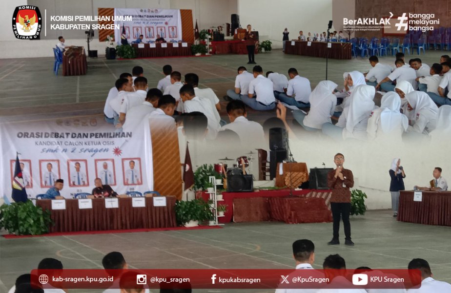 Kegiatan ini menjadi bagian dari rangkaian acara orasi dan debat calon Ketua OSIS, yang dikemas secara edukatif. Hadir sebagai pemateri, anggota KPU Sragen Irwan Sehabudin dan MH. Isnaeni, didampingi oleh staf sekretariat Agung Sapto Adi serta dua siswa PKL, Tyas Delvia Nasyrah Budiati dan Nur Aini Tiara Syifa. Kehadiran KPU Sragen selain untuk memberikan wawasan, juga sebagai bentuk nyata kolaborasi antara penyelenggara pemilu dan institusi pendidikan dalam menumbuhkan kesadaran berdemokrasi.