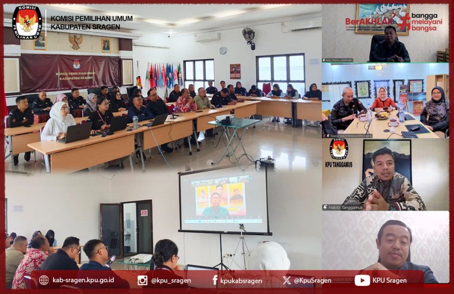 Sragen, kab-sragen.kpu.go.id - Komisi Pemilihan Umum Kabupaten Sragen berpartisipasi dalam kegiatan Talk To Me bertema “Merajut Sinergitas dan Kolektif Kolegial” yang diselenggarakan KPU Provinsi Jawa Tengah secara daring, pada Rabu, 14 Januari 2026. Kegiatan tersebut diikuti oleh ketua dan anggota KPU Kabupaten Sragen beserta jajaran Sekretariat KPU Kabupaten Sragen. Forum ini menjadi ruang berbagi pengalaman antarpenyelenggara pemilu untuk memperkuat kapasitas kelembagaan yang berintegritas dan profesional.