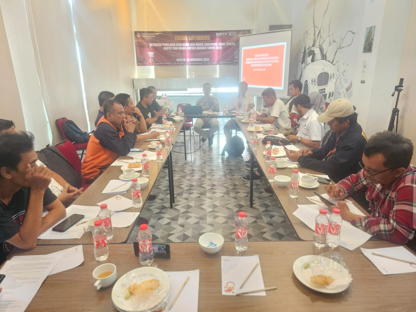 Sragen, kab-sragen.kpu.go.id - Pemilihan Gubernur dan Wakil Gubernur Jawa Tengah, dan Bupati dan Wakil Bupati Sragen Tahun 2024 akan dilaksanakan besok Hari Rabu, tanggal 27 November 2024. Dalam rangka menyampaikan kesiapan KPU Sragen dalam penyelenggaraan Pilkada 2024 ini, KPU Kabupaten Sragen mengadakan media gathering pada 25 November 2024, untuk menyampaikan berbagai hal terkait pelaksanaan Pilkada 2024 di Kabupaten Sragen. Hadir dalam kegiatan tersebut komisioner KPU Kabupaten Sragen antara lain Mukhsin, Irwan Sehabudin, dan M. Zainal Arifin.