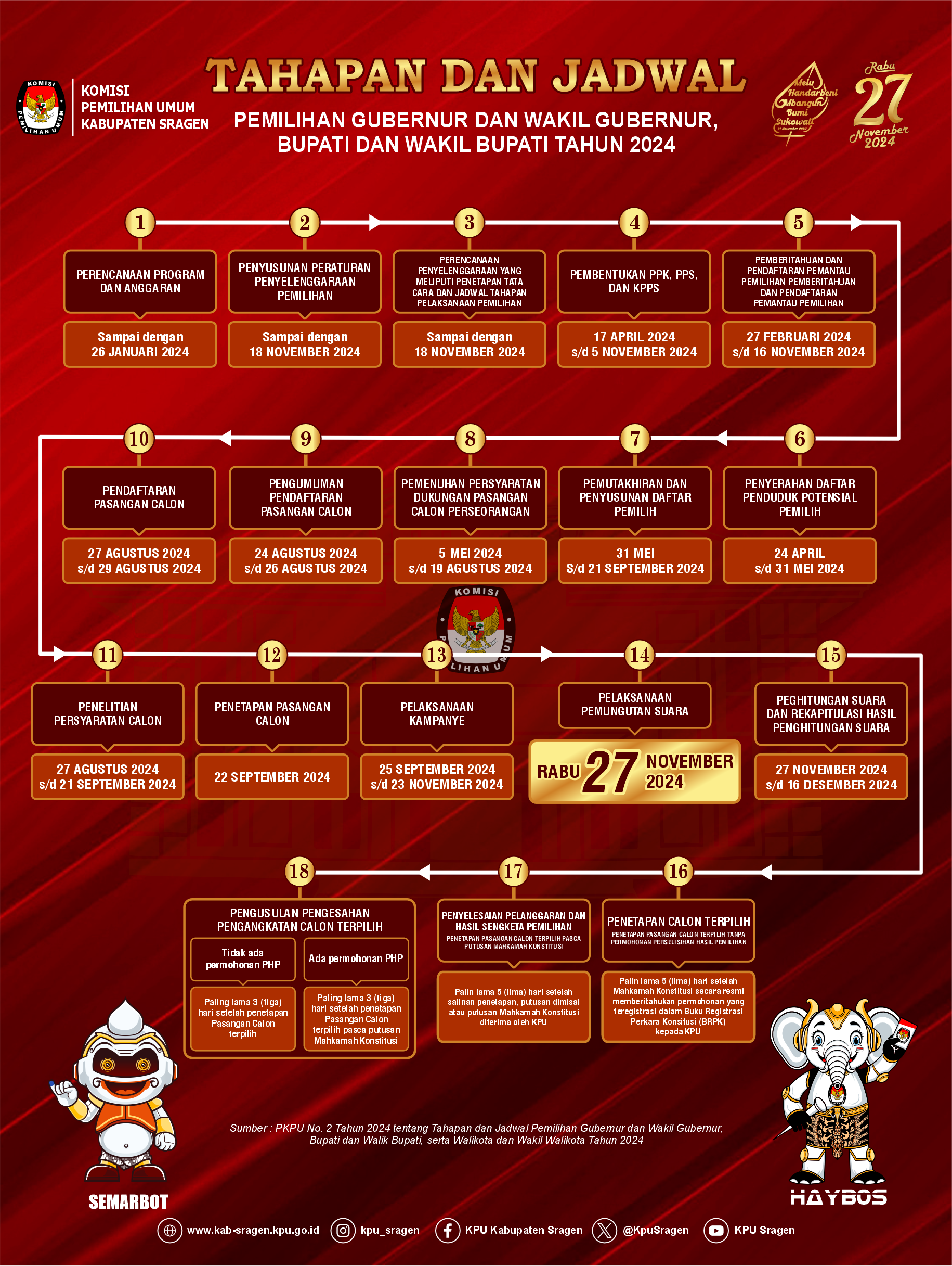 JADWAL DAN TAHAPAN PILKADA 2024 Rabu, 17 April 2024 07:00 678 ♦ PELAKSANAAN TAHAPAN PILKADA SRAGEN 2024 >> Bagikan: Telah dilihat 678 kali