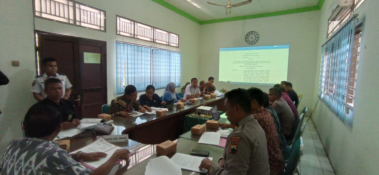 Rapat Koordinasi tersebut diprakarsai oleh Bakesbangpol Kabupaten Sragen, dan dihadiri antara lain oleh KPU Kabupaten Sragen, Bawaslu Kabupaten Sragen, Polres Sragen, serta unsur OPD pemerintah daerah kabupaten Sragen meliputi Satpol PP, DPU, Disperkimtaru, Dishub, Dinas LH, Diskominfo, DPMPTSP, serta Bagian Hukum Sekretariat Daerah Kabupaten Sragen.