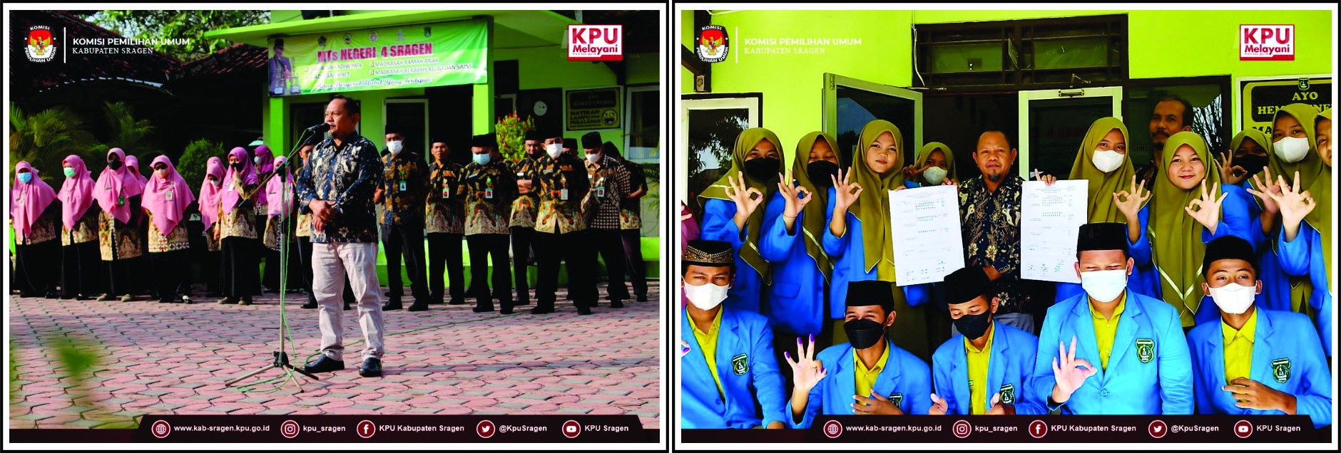 Maka dari itu, pengenalan proses pemilu sangat penting untuk dilakukan kepada pemilih pemula terutama mereka yang baru berusia 17 tahun. Salah satu upaya untuk mewujudkan hal tersebut, pada Kamis, (9/6) Ketua KPU Kabupaten Sragen, Minarso, memenuhi undangan untuk menjadi narasumber pada acara Pemilihan Ketua Osis MTsN 4 Sragen. Ini bukan kali pertama, sebelumnya undangan serupa juga hadir dari SMAN 3 Sragen dan SMPN 1 Sidoharjo. Ketua, KPU Kabupaten Sragen dalam kesempatan tersebut menyampaikan jika suara pemilih pemula sangat penting, bahwa suara mereka dapat menentukan pemerintahan selanjutnya dan meningkatkan kesejahteraan hidup bangsa. Pemimpin dan pemerintahan yang akan meningkatkan kesejahteraan bangsa lahir dari Pemilu yang baik. Pemilu yang baik dan bersih akan tercipta dengan adanya pemilih yang mempunyai pengetahuan, kesadaran dan bebas intimidasi dari berbagai pihak. Dan pemilihan Ketua Osis merupakan praktik yang sempurna untuk menerapkan nilai-nilai demokrasi, terutama pemilu.