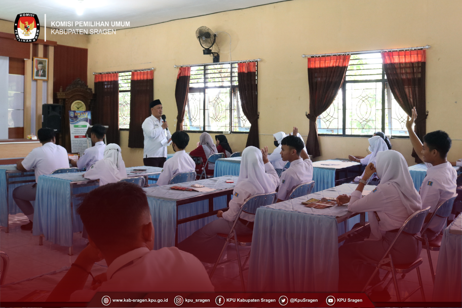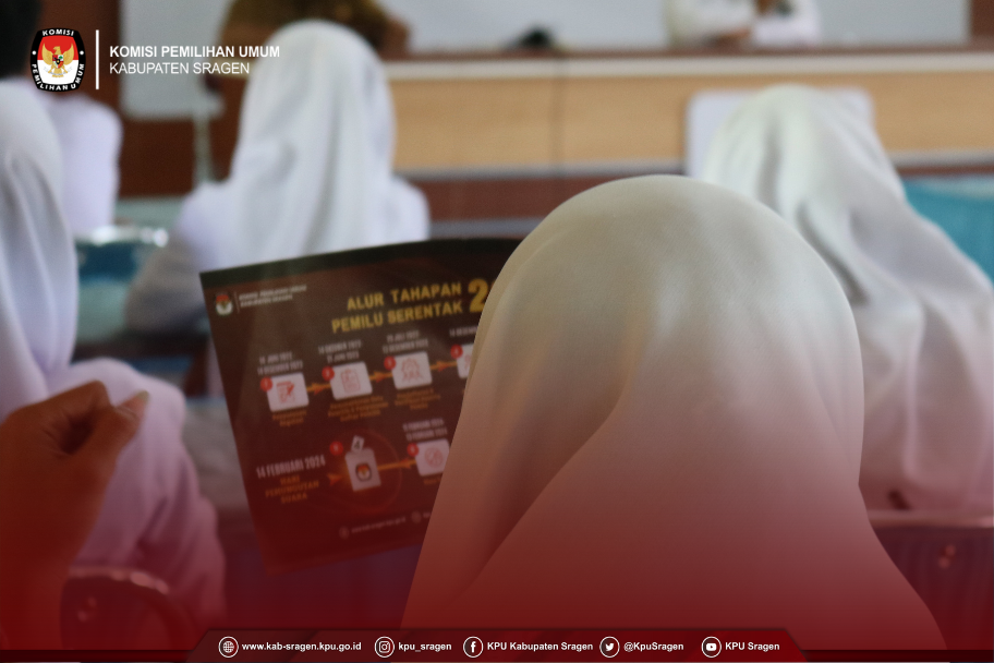 (1/8) KPU Kabupaten Sragen kembali melaksanakan giat sosialisasi mengenai Tahapan Pemihan dan Pemilu Serentak Tahun 2024. Sosialisasi dilaksanakan di Aula SMA N 1 Sukodono dimulai pukul 09.00 WIB dan dibuka langusng oleh perwakilan Guru dari SMA N 1 Sukodono. Peserta sosialisasi kurang lebih berjumlah 50 peserta yang berasal dari perwakilan tiap-tiap kelas.