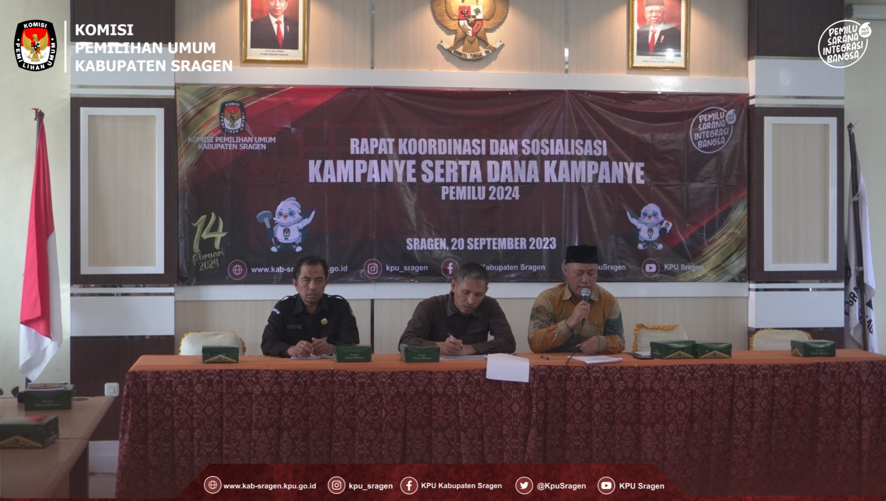 Tanggal 18 Juli 2023 KPU Kabupaten Sragen mengadakan Rapat Manajemen kinerja badan adhoc keputusan Keputusan KPU Nomor : 337/HK.06.2-Kpt/01/KPU/VII/2020 Tentang Pedoman Teknis Penanganan Pelanggaran Kode Etik, Kode Perilaku, Sumpah/Janji, Dan/Atau Pakta Integritas Anggota Panitia Pemilihan Kecamatan, Panitia Pemungutan Suara, Dan Kelompok Penyelenggara Pemungutan Suara . Di hadiri PPK bidang Hukum dan SDM se Kabupaten Sragen bertempatan di Aula KPU Sragen