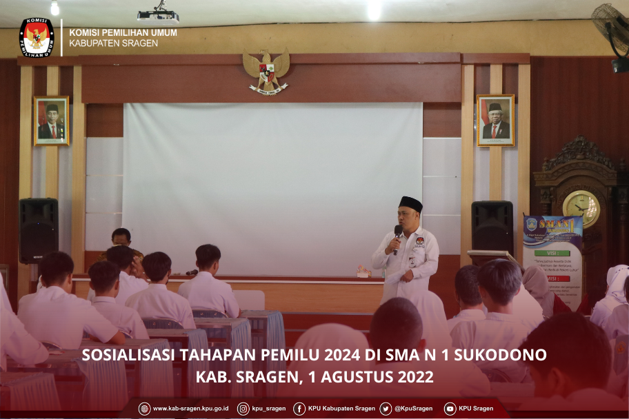 (30/7) KPU Kabupaten Sragen kembali melaksanakan giat sosialisasi mengenai Tahapan Pemihan dan Pemilu Serentak Tahun 2024. Sosialisasi dilaksanakan pada tanggal 30 Juli 2022 dalam acara Kontak Tani Nelayan Andalan (KTNA) Expo di Gedung Sasana Manggala Sukowati (SMS) Sragen. Kontak Tani Nelayan Andalan atau disingkat KTNA adalah suatu organisasi independen di Indonesia yang berorientasi pada aktivitas sosial di sektor agrikultur, yang berbasiskan agribisnis dan lingkungan hidup di pedesaan. Berdasarkan data BPS, pada tahun 2019 terdapat 33,4 juta penduduk Indonesia yang berprofesi sebagai petani. Diperlukan kebijakan dan negosiasi yang mendukung pembangunan eknomi, khususnya bidang pertanian. Harapanya para petani semaki melek politik dalam menentukan pilihan pada Pemilu Tahun 2024. Sosialiasi disampaikan oleh komisioner KPU Kabupaten Sragen Bp. Suwarsono, S.Pd. Divisi Sosialisasi, Pendidikan Pemilih, Partisipasi Masyarakat dan SDM. Disampaikan materi mengenai jadwal dan tahapan Pemilihan dan Pemilu Serentak Tahun 2024. Sosialisasi diikuti kurang lebihnya 453 peserta yang berasal dari pengunjung expo. Turut dibagikan selebaran pamflet yang berisi mengenai tahapan pemilihan dan pemilu serentak tahun 2024. Bp. Suwarsono, S.Pd. menyinggung anggaran yang digelontorkan pemerintah untuk menyelenggarakan Pemilihan dan Pemilu Serentak yang akan diselenggarakan pada tahun 2024 nanti untuk menarik partisipasi masyarakat umum agar berperan aktif mengambil peran menjadi penyelenggara pemilu sebagai PPK, PPS, PPDP, dan KPPS. Mengingat banyaknya penyelenggara pemilu yang gugur pada penyelenggaraan pemilu tahun 2019, pada penyelenggaraan pemilihan dan pemilu serentak tahun 2024 dengan anggaran yang sudah diteken pemerintah saat ini, diharapkan mampu menunjang kesejahteraan penyelenggara pemilu sesuai dengan beban kerja yang ditanggung. Bp. Suwarsono, S.Pd. mengajak peserta sosialisasi untuk menanggulangi dan meminimalisir terjadinya praktik money politic dan penyebaran berita palsu (hoax) yang marak terjadi pada saat tahapan peneyelnggaraan pemilu berjalan atau bahkan sebelum tahapan pemilu berjalan. Dengan peran aktif masyarakat dalam menyukseskan pemilihan dan pemilu serentak tahun 2024 menjadi sebuah bentuk implementasi demokrasi dalam kehidupan bermasyarakat. Setiap suara rakyat memiliki posisi penting dalam perkembangan kemajuan bangsa Indonesia.