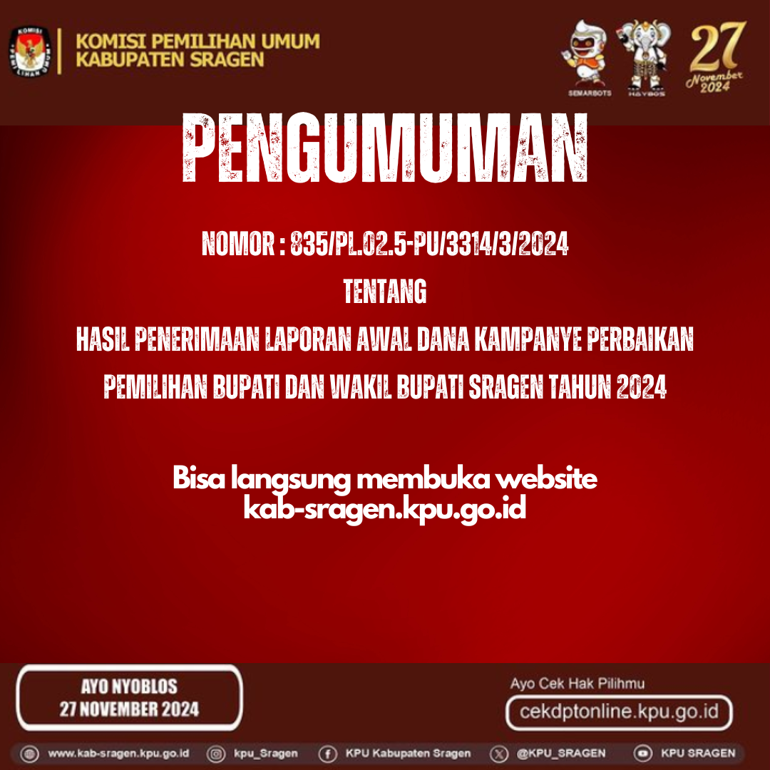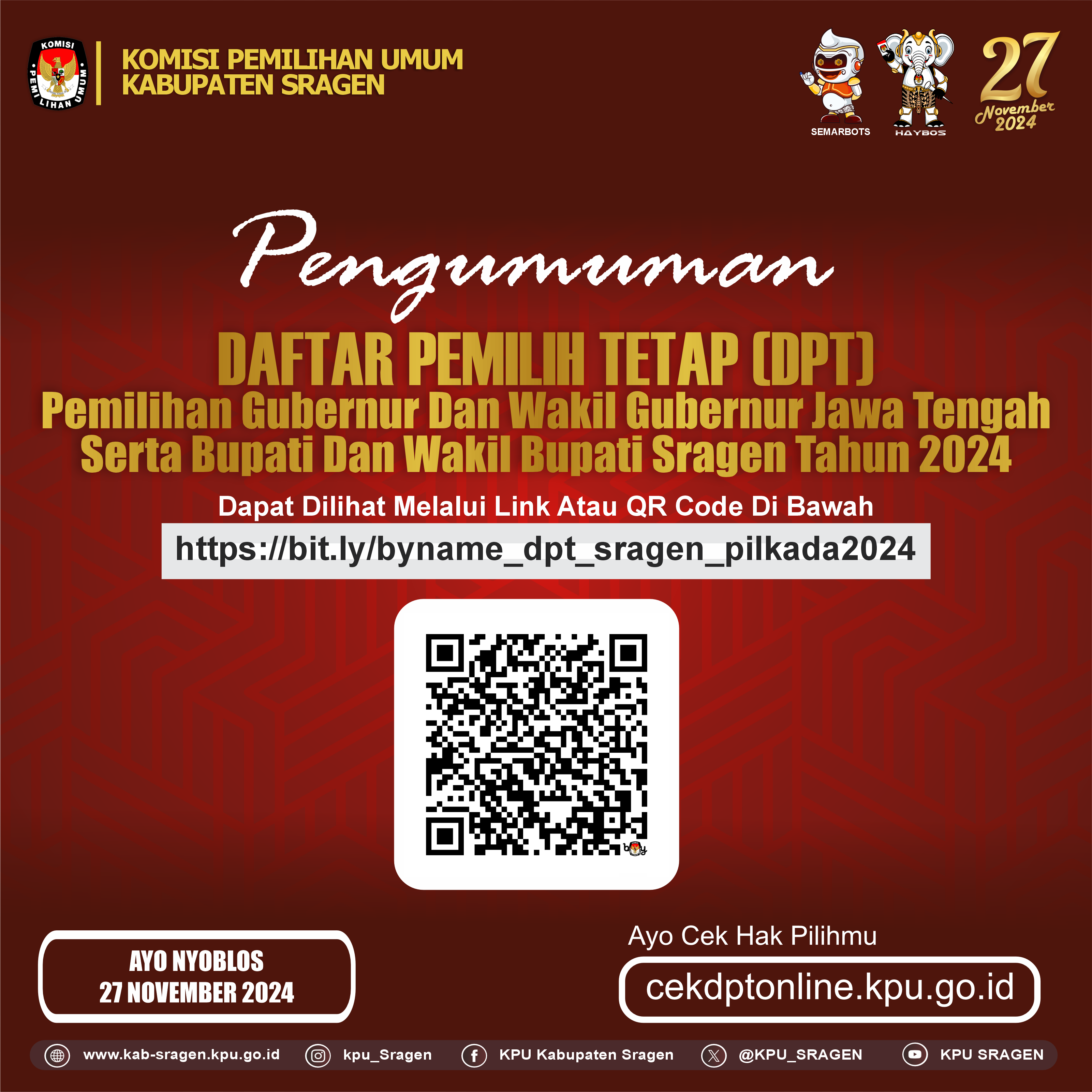 Cek daftar lengkap dan informasi lainnya melalui website resmi KPU Kabupaten Sragen atau hubungi kami melalui kontak resmi.