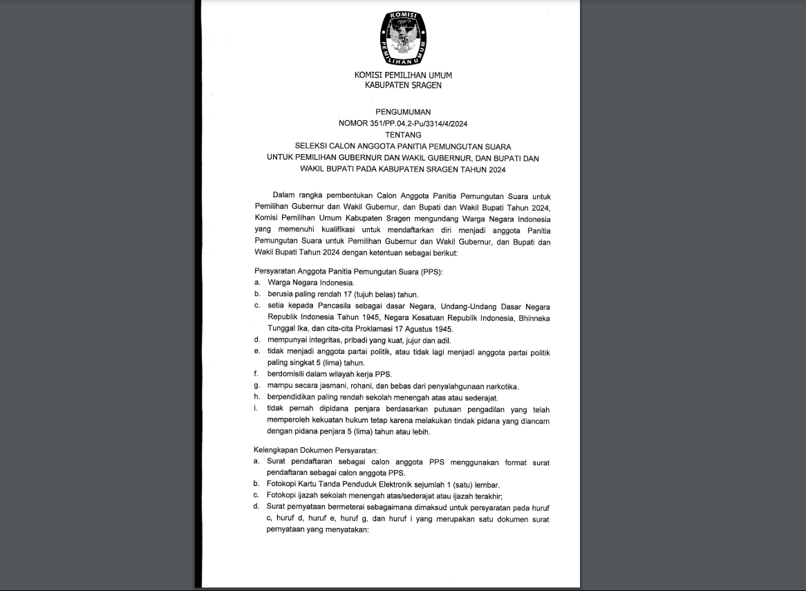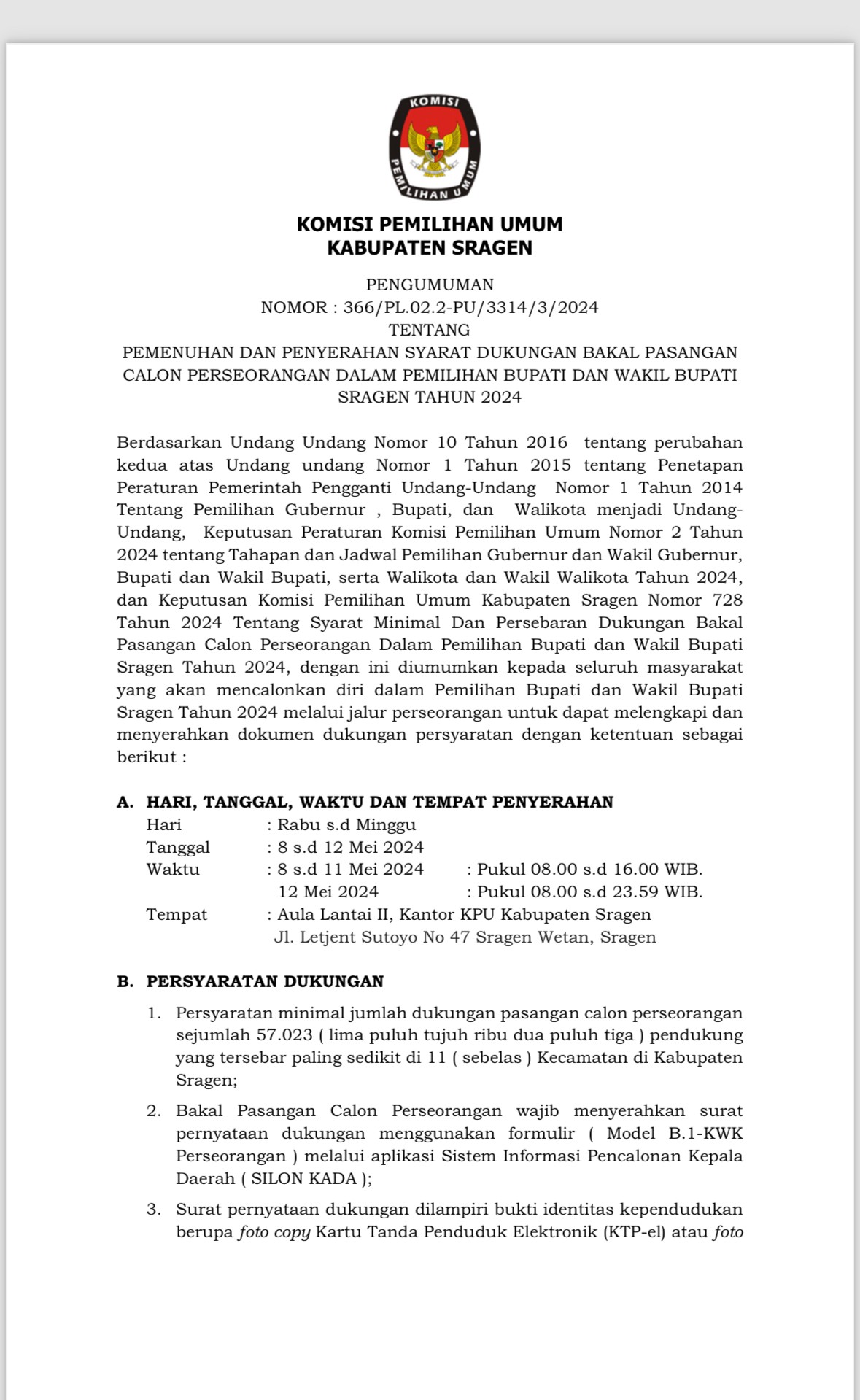 BUPATI DAN WAKIL BUPATI PADA KABUPATEN SRAGEN TAHUN 2024