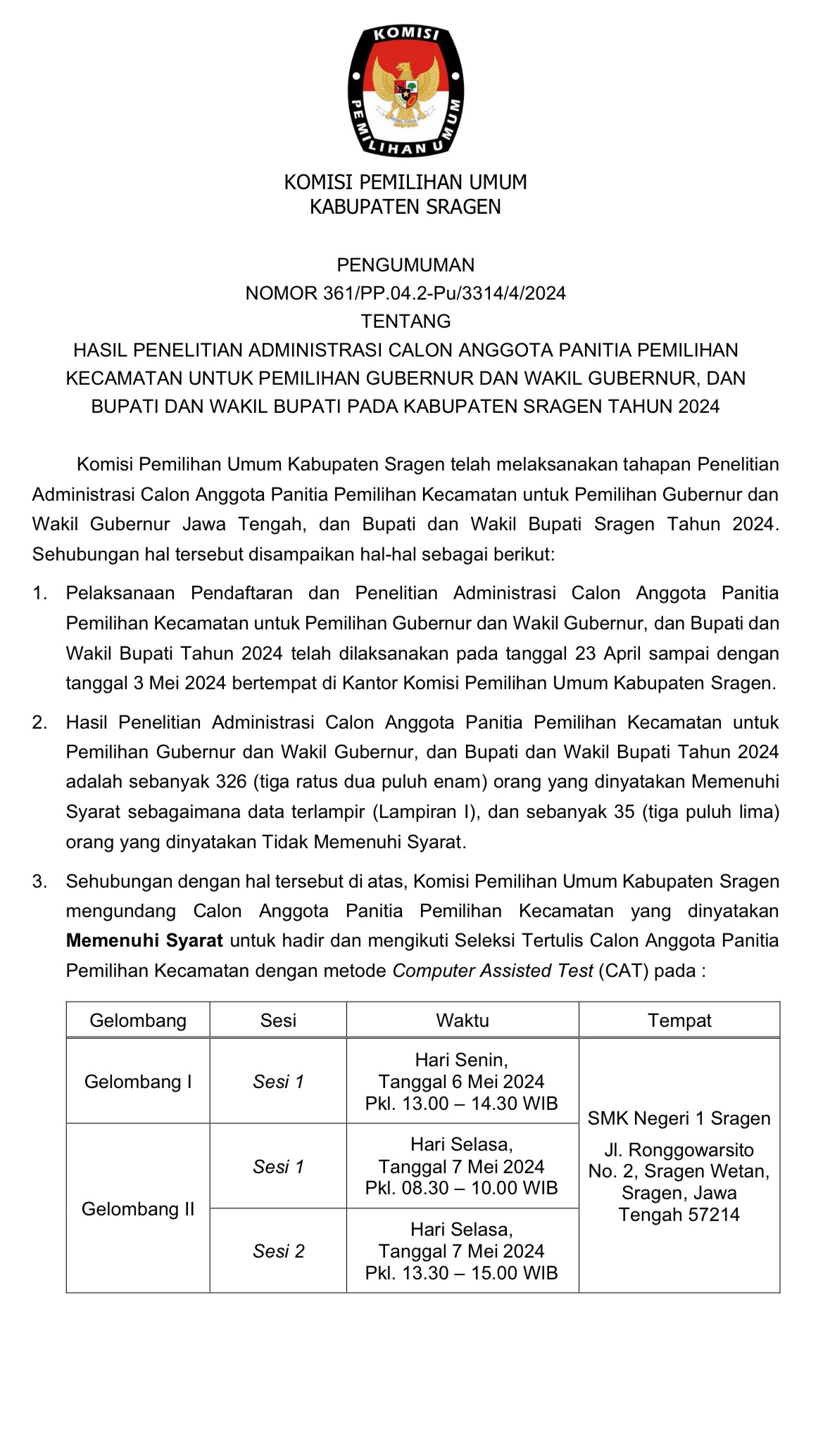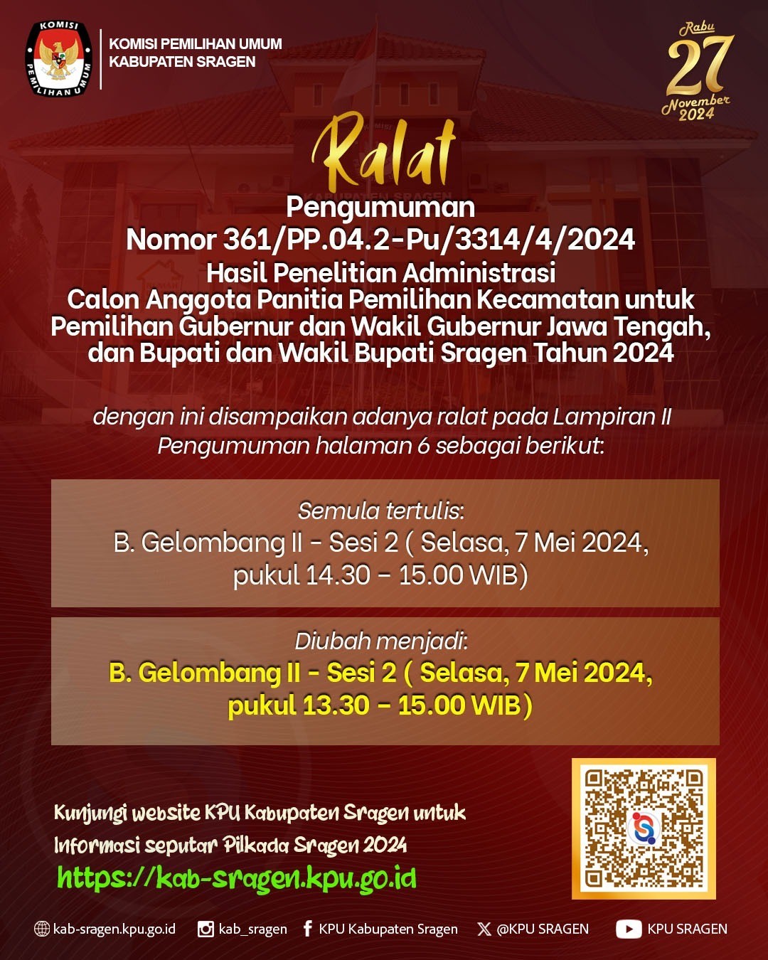 RALAT PENGUMUMAN NOMOR 361/PP.04.2-Pu/3314/4/2024