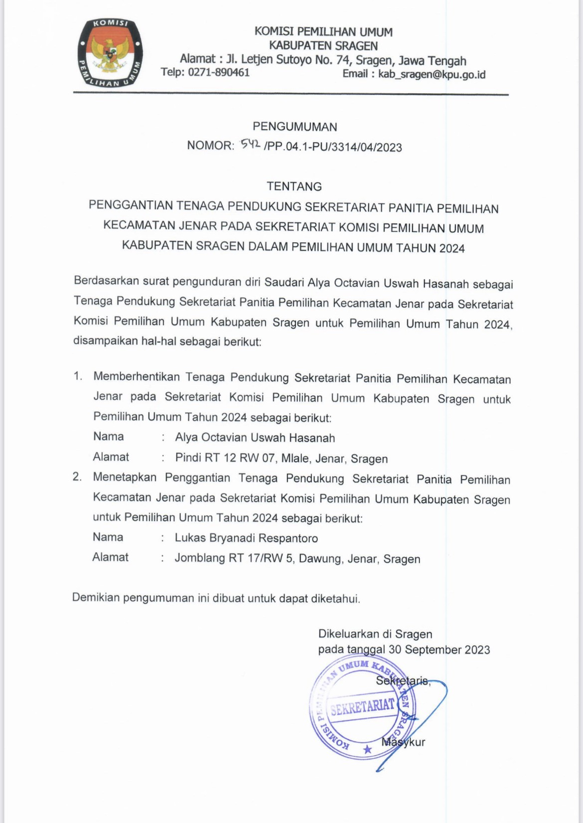 SK PENETAPAN DCS DPRD KAB SRAGEN 2024
